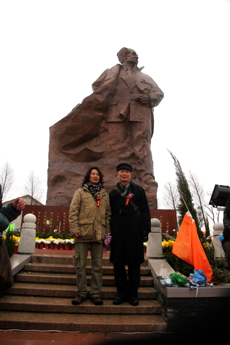 雕像作者東郭和著名的美術理論家、美術教育家、畫家左莊偉教授在胡耀邦雕像前留影